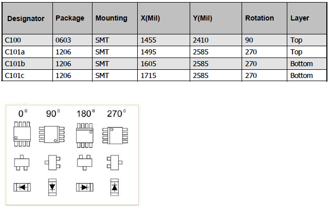 - Koordinaten des Bauteilmittelpunktes in Bezug auf den Referenzpunkt (X (Mil)), (Y (Mil))